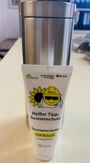 Der Arbeits- und Gesundheitsschutz liegt uns am Herzen. Gerne versorgen wir unser Baustellenteam mit ausreichend Sonnencreme!